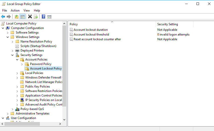COMPUTER CONFIGURATION > WINDOWS SETTINGS > SECURITY SETTINGS > ACCOUNT POLICIES > ACCOUNT LOCKOUT POLICY