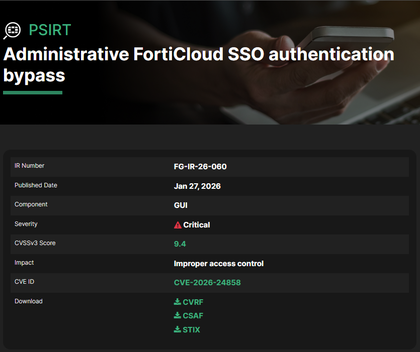 • Fortinet قابلیت FortiCloud SSO را در سمت FortiCloud در تاریخ ۲۶ ژانویه ۲۰۲۶ غیرفعال کرد.