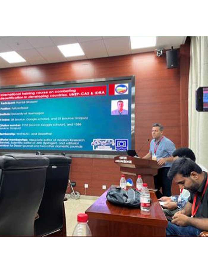 برگزاری نشست علمی توسط جناب آقای دکتر حمید غلامی، عضو هیات علمی گروه مهندسی منابع طبیعی، به همراه اعضای هیات علمی دانشکده کشاورزی و منابع طبیعی و دانشجویان در خصوص ارائه تجربیات سفر به چین، ویژه پژوهشگران جوان و گزارش از فعالیت های بیابان زدایی و تولید انرژی و غذا در مناطق بیابانی چین.